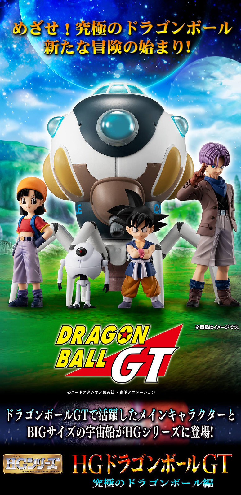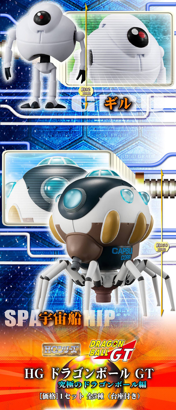 「HG 七龍珠GT 終極七龍珠篇」以即將踏上壯大之旅的終極七龍珠篇為主題,收錄了變小的悟空、小芳、特南克斯、吉魯,以及全高 15 公分的宇宙船!一同擺設就能展現《七龍珠GT》的世界觀喔!