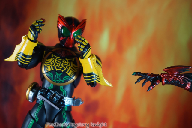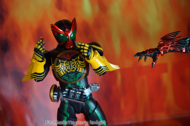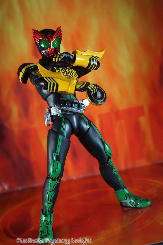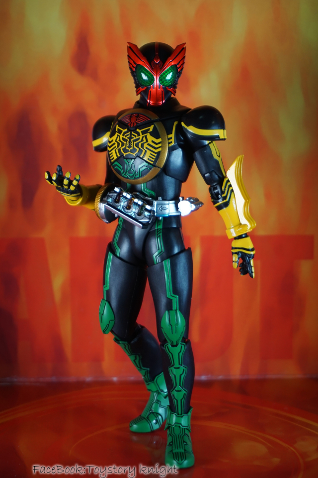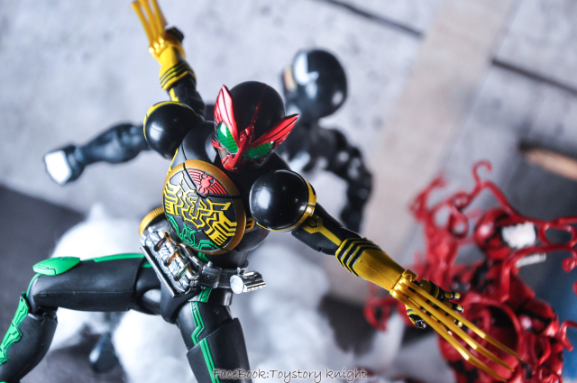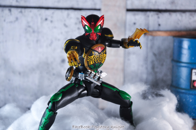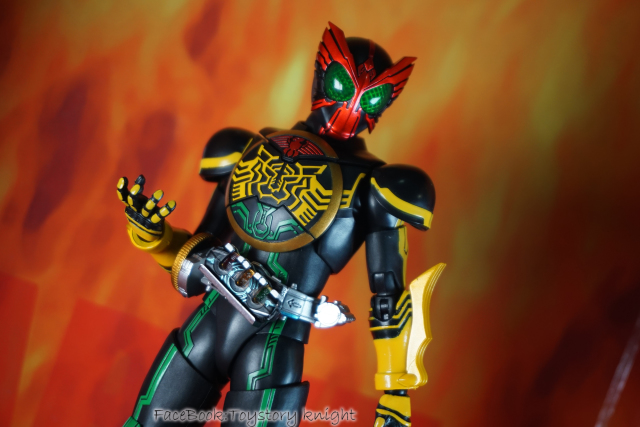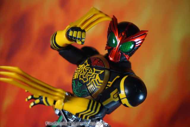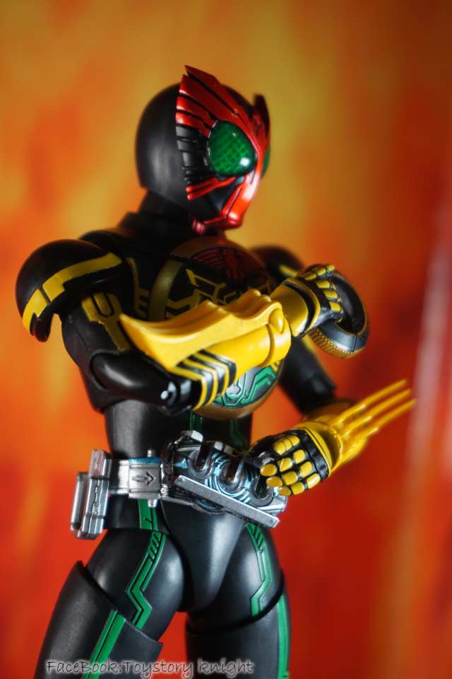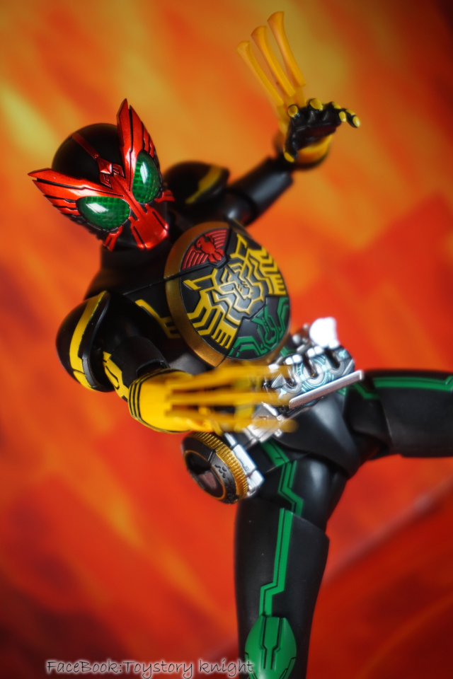 今次要說的是終於真骨彫化的 OOO 基本形態鷹虎蝗聯組,比較特別的就是今次 OOO 胸前的聯組是可以拆下的,可以配合之後推出的不同形態替換出不同的 Combo。