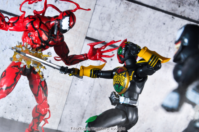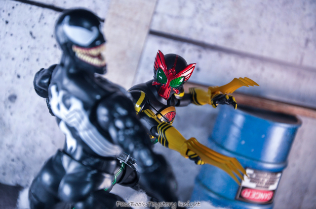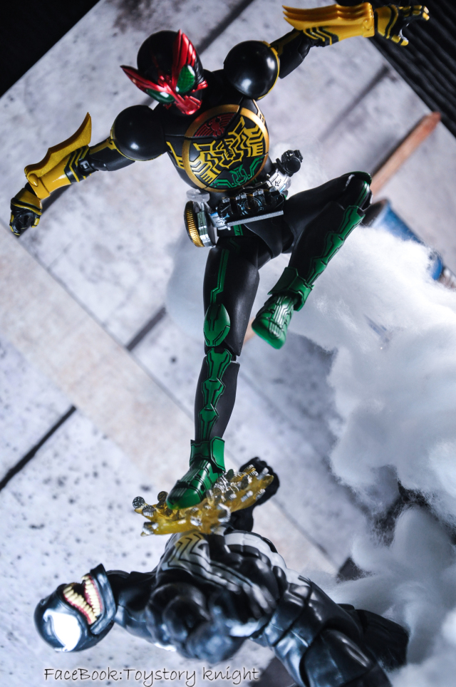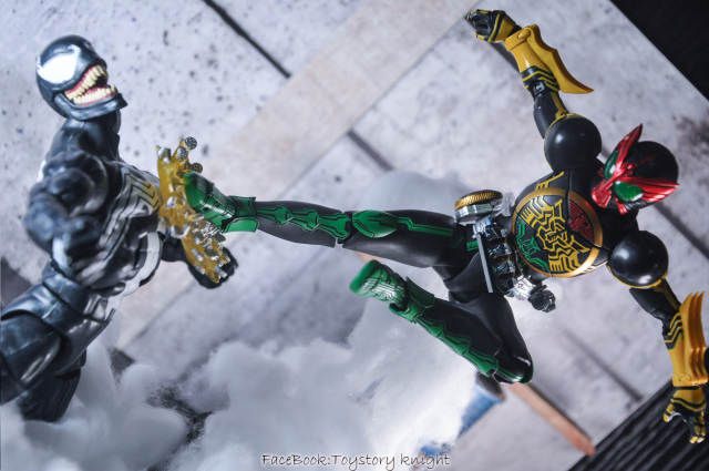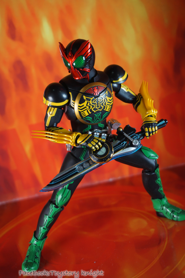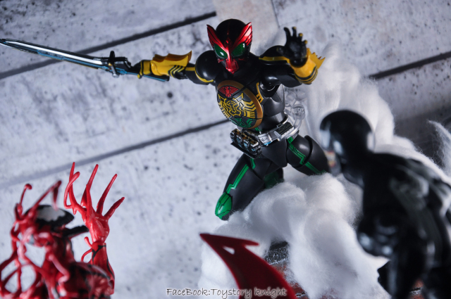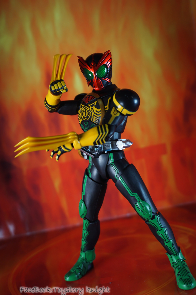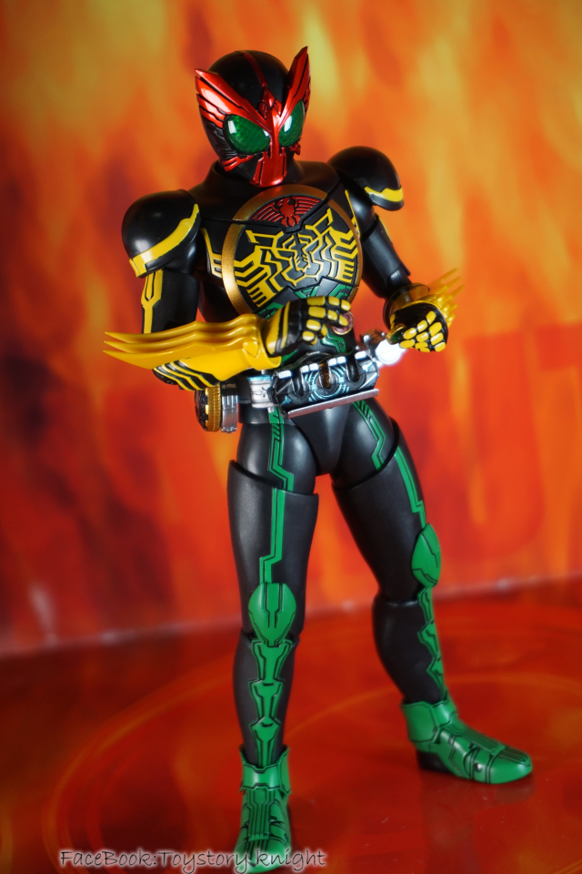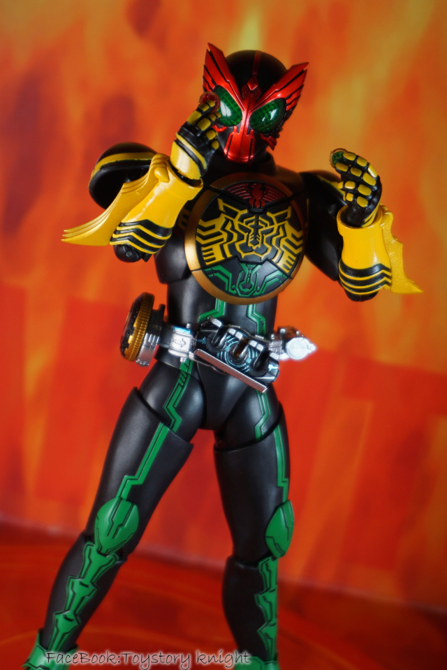 今次要說的是終於真骨彫化的 OOO 基本形態鷹虎蝗聯組,比較特別的就是今次 OOO 胸前的聯組是可以拆下的,可以配合之後推出的不同形態替換出不同的 Combo。