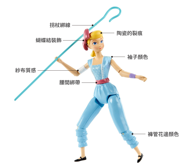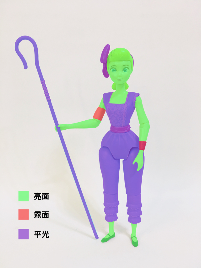 仔細觀察 它在眼睛的部份是用亮面處理,皮膚是霧面