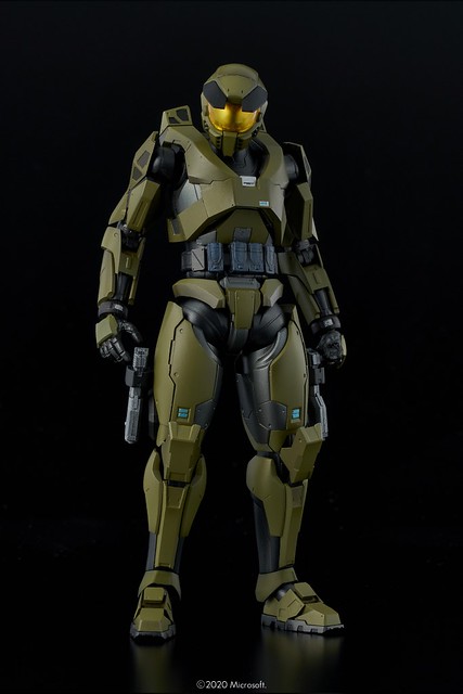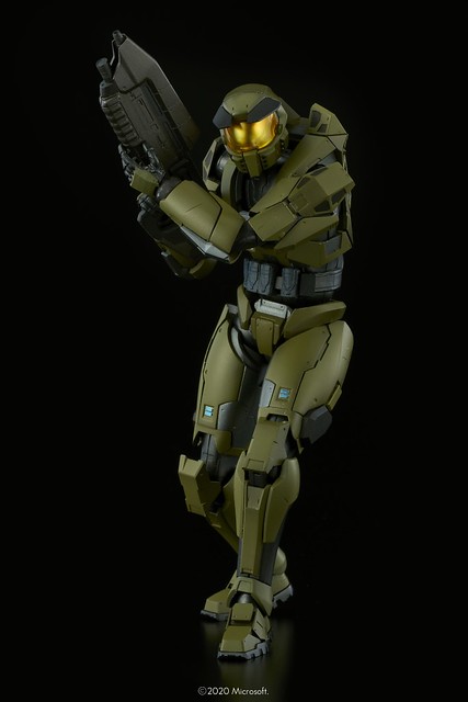 這款來自於微軟 Xbox 主機的招牌遊戲:《最後一戰》的士官長可動立體化人形商品,其設計是由曾經擔任過多部電影和遊戲作品的機體設計而著名的「出雲重機」裡的大久保淳二先生所擔綱。以當初在 2001 年所推出的第一款「最後一戰」(HALO: COMBAT EVOLVED)遊戲裡的士官長造型為基準,玩家們所熟悉的武器與裝備,包含「GEN1 Mjolnir MK.V」裝甲和「M6D」麥格農、以及「MA5B」步槍與近戰武器「能量劍」等等,全都一應俱全。