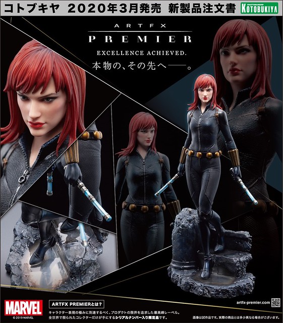 由日本玩具廠牌壽屋 KOTOBUKIYA 所發行的新商品「ARTFX PREMIER」系列,已經推出過多款以 Marvel Universe 為主題的超級英雄作品,包括鋼鐵人、惡作劇之神洛基、美國隊長、雷神索爾等等,現在又要再加上一位很重要的女性角色,那就是集美艷、感性,與絕佳身手於一身的「黑寡婦」(Black Widow)!同樣將以 1/10 比例與 PVC 塗裝完成品的方式和大家見面,預計將於 2020 年 3 月發售!