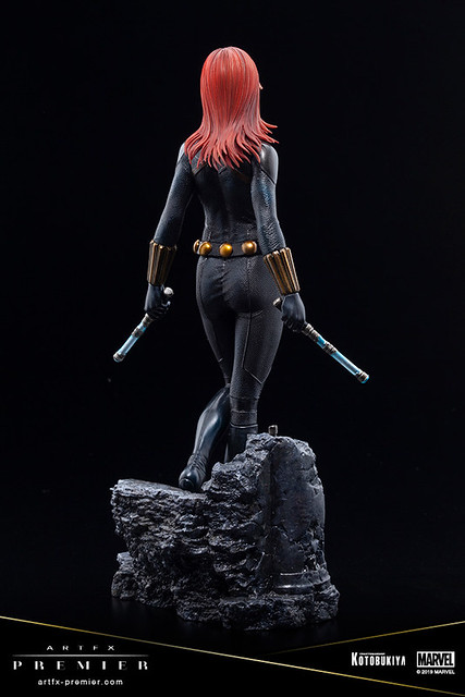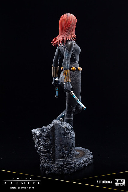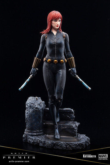在 ARTFX PREMIER 這個系列中,黑寡婦是第二位女性角色商品,本作最大的特徵在於將她獨有的美給描繪出來,精美的塑造與完美逼真的彩色塗裝,招牌黑色緊身衣讓她的身形更顯修長也更有魅力。完全是一款粉絲看到之後都會極度想擁有的商品。本商品以她雙手各持短棍武器,彷彿正要走下樓梯的樣子做為雕塑主題,看到時就彷彿她正下著樓梯,準備要對付眼前的敵人。頗為生動。