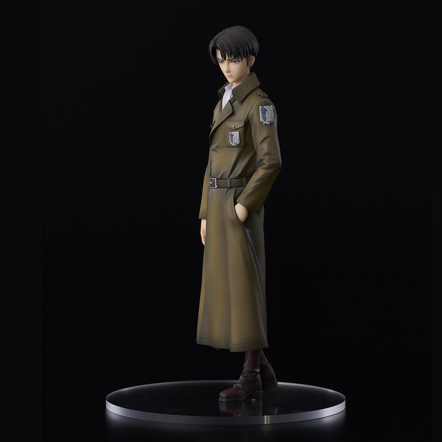 生還的肯尼自己也只剩一口氣,最後在樹下向里維坦白關於他的一切與身世之後便力竭而死。而這款商品的造型,就是參考在與肯尼的兵團戰鬥過後,里維回想起肯尼的話,身穿一席大衣在窗邊思考著自己生存的意義以及未來的打算時的認真模樣。