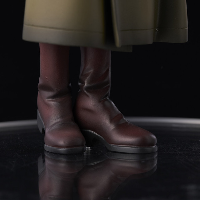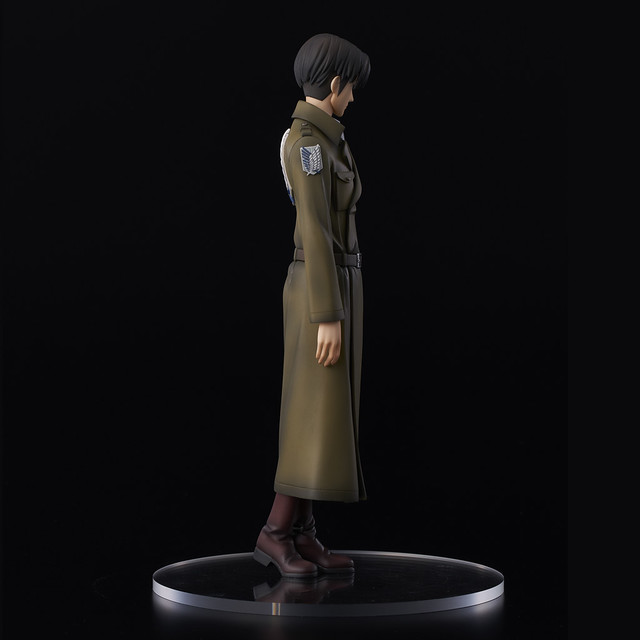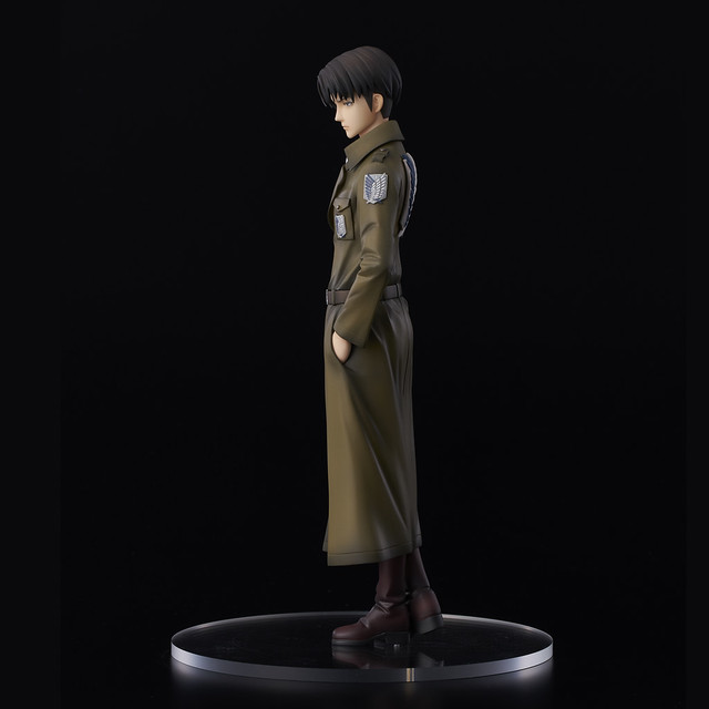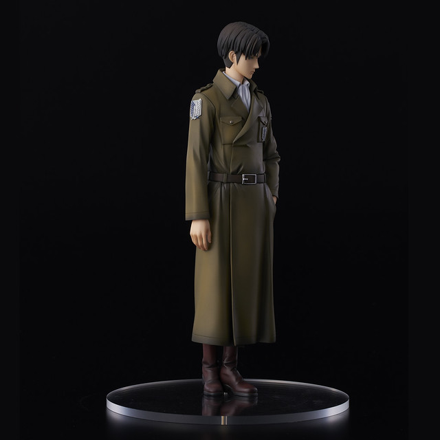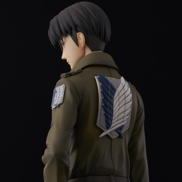 商品的用心程度無話可說,表情細節的線條、大衣顏色深淺的變化和皺褶的表現、以及背後那象徵自由之翼的調查兵團標誌,全都完美地再現。是一款值得收藏擺放的精緻人形商品。