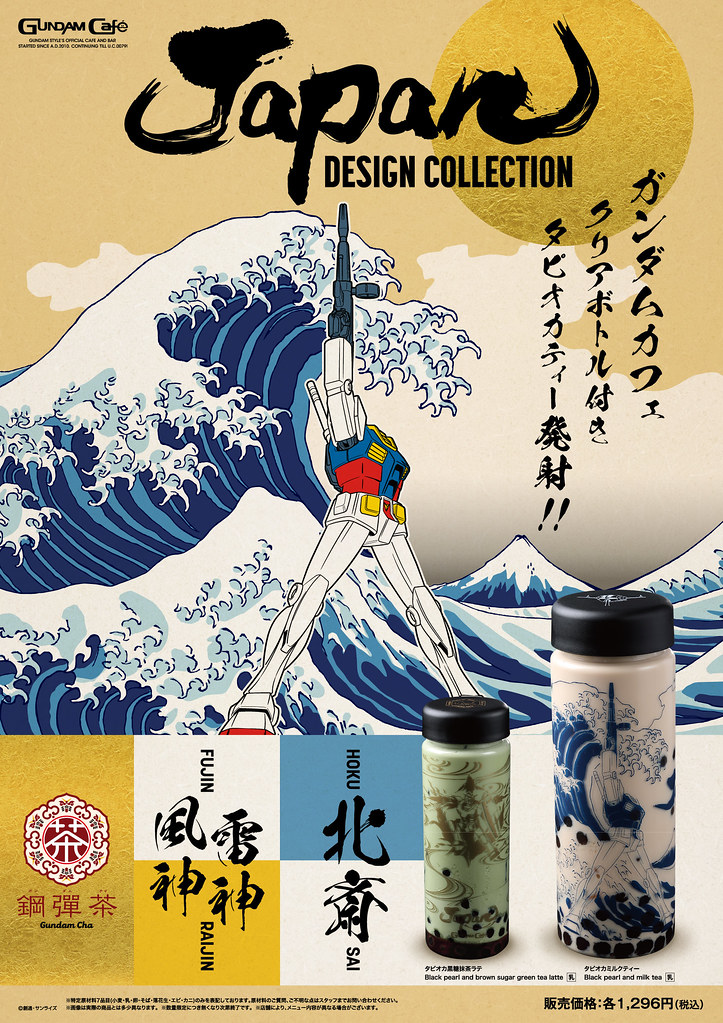 鋼彈官方咖啡廳「GUNDAM Café」全門市和大阪「GUNDAM SQUARE」於上個月(8月)開始販售的「JAPAN Design Collection」系列商品,以『融入能夠象徵日本的事物』作為設計發想,推出了「葛飾北斎&Last Shooting」和「鋼彈風神雷神」兩款含透明水壺的鋼彈茶(珍珠奶茶)。