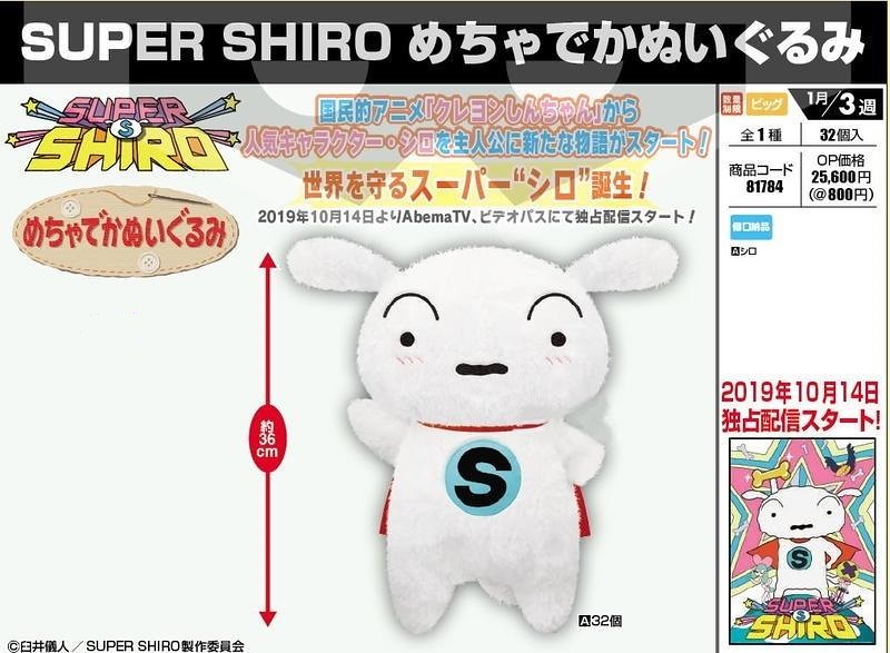 頂著《蠟筆小新》各年齡層大小通吃的高人氣,在動畫未放映之前超級小白的相關週邊就已經陸續推出!除了日本三英貿易公司預計 10月中旬發售的兩款小白超人吊飾以外,還有預計2020年1月下旬發售的大型超級小白布偶。
