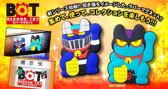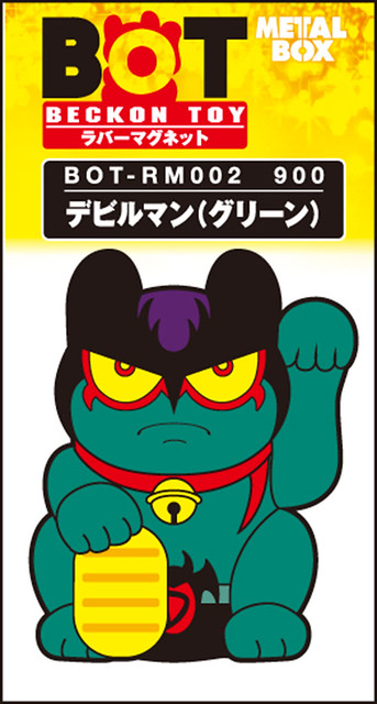 日本的玩具公司 METALBOX 最近推出特殊造型的招財貓磁鐵,將永井豪老師旗下的著名作品《無敵鐵金剛》(マジンガーZ)和《惡魔人》(デビルマン),與大家所熟知的招財貓合併在一起,做成可愛的特殊圖案磁鐵商品。原本總是看起來威風凜凜的鐵金剛和惡魔人,想不到經過這樣一番變化,竟然也能讓人覺得特別可愛呢!