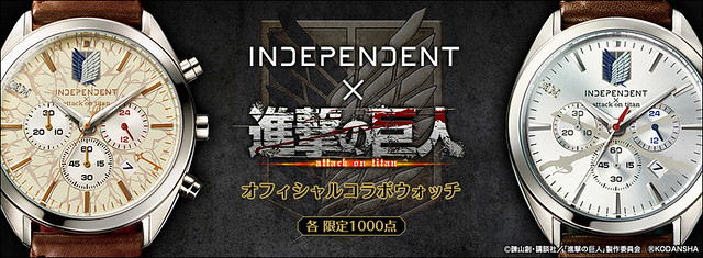 為慶祝日本人氣漫畫《進擊的巨人》連載十周年紀念!CITIZEN旗下的獨立品牌INDEPENDENT與《進擊的巨人》合作聯名推出紀念錶款,分別有艾連(エレン)和里維(リヴァイ)兩種款式,各限量1000只,在PREMICO網路商店進行預購。