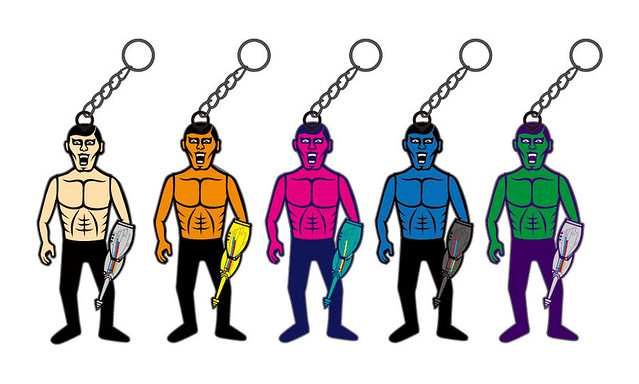 那傢伙(あいつ/AITSU)可以說是PUNK DRUNKERS的靈魂角色,雖然很弱,但永遠不會死;基本語言是日語,但有與動物交談的能力。奇怪的角色設定加上如般若一般的詭異笑容,搭配重金屬風格的白臉,這樣的視覺衝擊總讓人忍不住想多看幾眼。一般軟膠的那傢伙(あいつ/AITSU)就已經常常賣到天價了,看來這三款那傢伙(あいつ/AITSU)木雕的收藏價值更是前途無量阿。