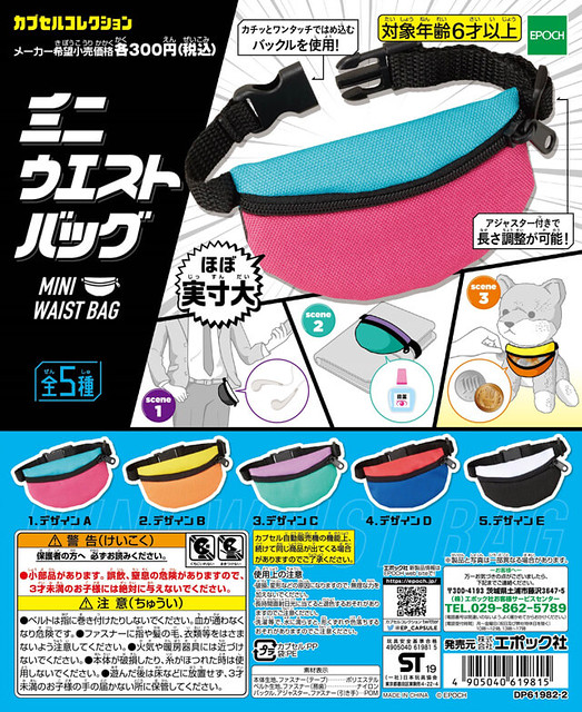 專門把各式有趣題材作為轉蛋出品的日本EPOCH (エポック)品牌,於9月中旬即將推出一款讓人廢到笑的轉蛋商品:迷你腰包(ミニウエストバッグ)!