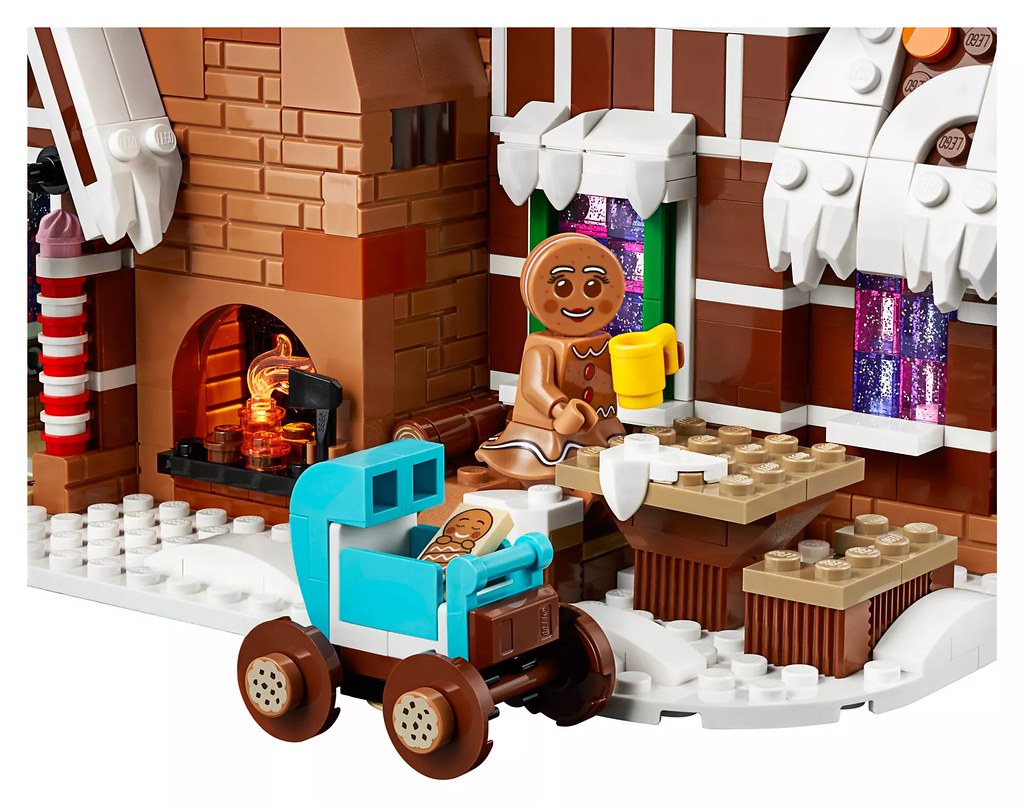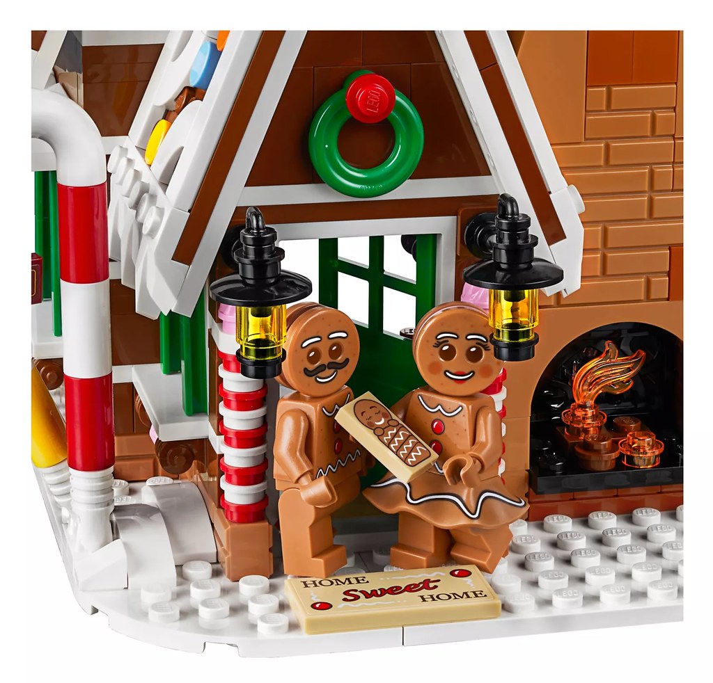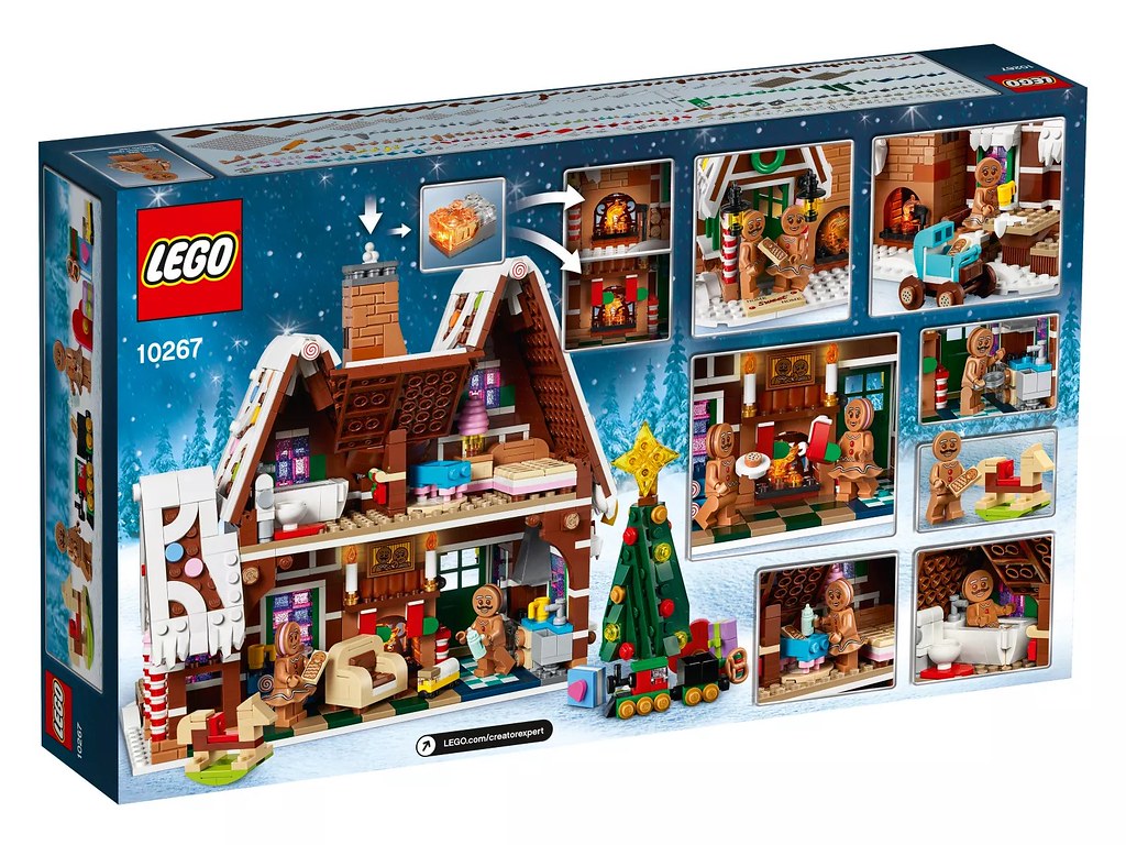 本次的薑餅屋屬於創意系列的特殊子主題產品線「冬季村莊(Winter Village)」,Winter Village 最大的特點就是建築都覆蓋著白雪、有著斜斜的尖屋頂與發光磚,大部分人偶都身穿厚厚的保暖衣物,是個相當浪漫的系列~「LEGO 10267 薑餅屋」零件數共計 1477 片,組裝完成後尺寸為長 26 × 寬 13 × 高 21 公分,以豐富的白色、褐色磚堆砌出在聖誕佳節時會出現的甜滋滋薑餅屋,主角則是一對薑餅人夫妻人偶與採用 1×2 零件表示的薑餅人寶寶。