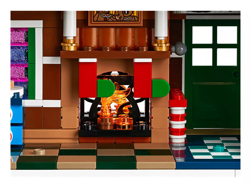 屋子的外部結構保持了冬季村莊一貫的尖屋頂特色,並表現出糖霜覆蓋、快要滴落的樣貌,以及用糖黏合餅乾的設計,有著 CANDEY LANE 字樣的路標更是以柺杖糖加以固定,加上拿來當窗戶的華麗零件與大煙囪,整體非常好看。