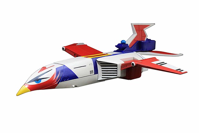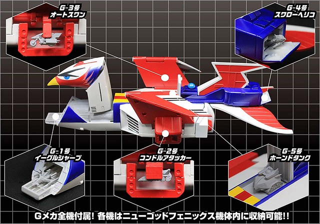 其實早在去年 2018 年的時候,METAL ACTION 系列就已經推出過第一代的鳳凰號(ゴッドフェニックス),而這台新鳳凰號,是在動畫第二部《科學小飛俠 II》(科学忍者隊ガッチャマン II)登場的後繼機體,當時因為原有的鳳凰號的戰力已經不敷使用,因此改以新鳳凰號為平時戰備的搭載裝置。舊的鳳凰號則暫時將之停放在南宮博士的別墅裡,不過故事後期有再次登場,兩台鳳凰號一同使出「雙重火鳥功」(ダブル科学忍法・火の鳥)。