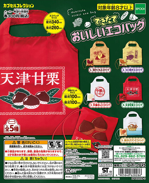 專門把各式有趣題材作為轉蛋出品的日本EPOCH (エポック)品牌,於9月開始發售實用度極高的「剛出爐的美食環保袋」轉蛋,共有5種款式,一轉300日元。