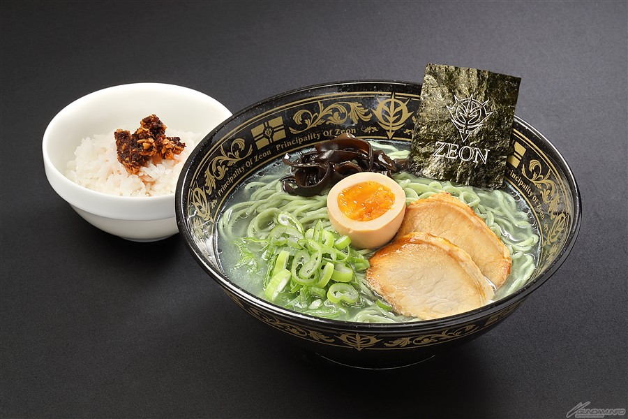 兩款拉麵售價皆為¥1,080(含稅),與先前跟乾麵製造商「玉川食品株式會社」(江戸玉川屋)聯名合作推出的量產型薩克鹽味拉麵(量産型ザクラーメン塩拉麺)、紅色彗星番茄辣味義大利麵(赤い彗星パスタ アラビアータ)一樣,皆是使用以量產型薩克為設計的綠色拉麵和夏亞專用薩克的紅色義大利麵。除了有代表各自機體顏色的彩色麵體之外,也有印上LOGO和機型的海苔片點綴。