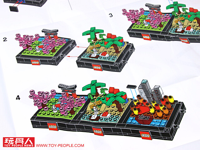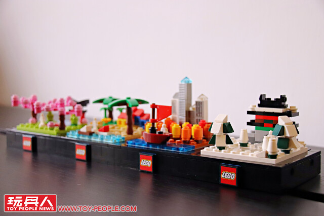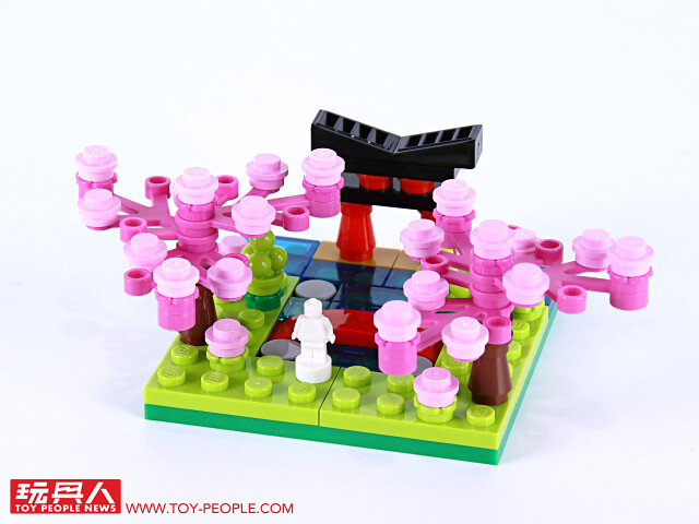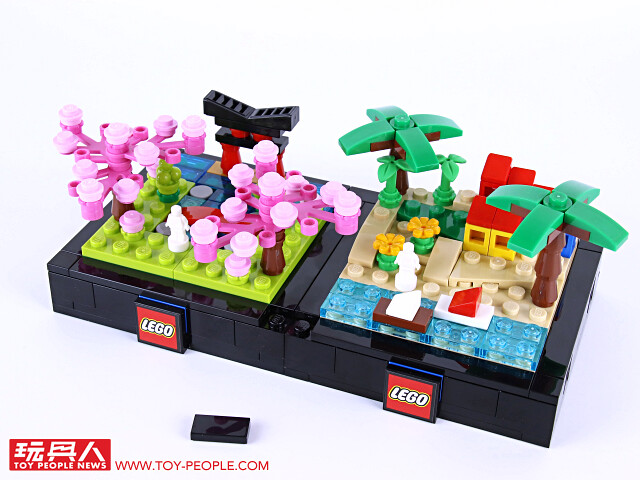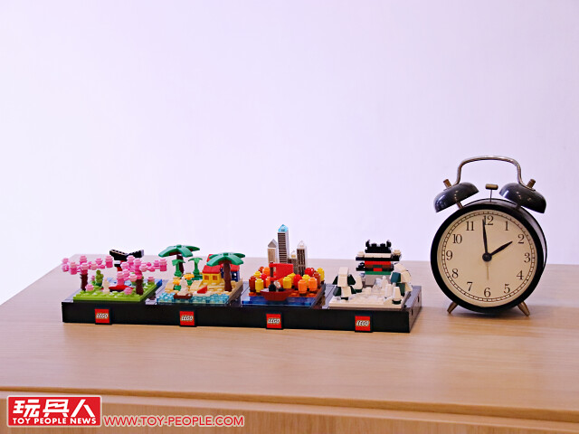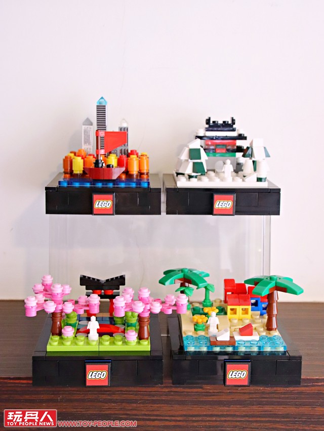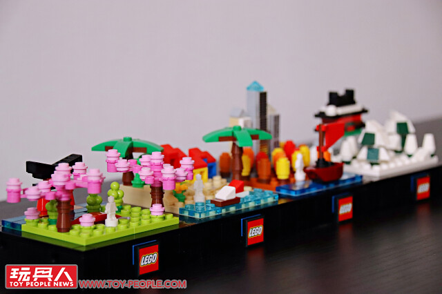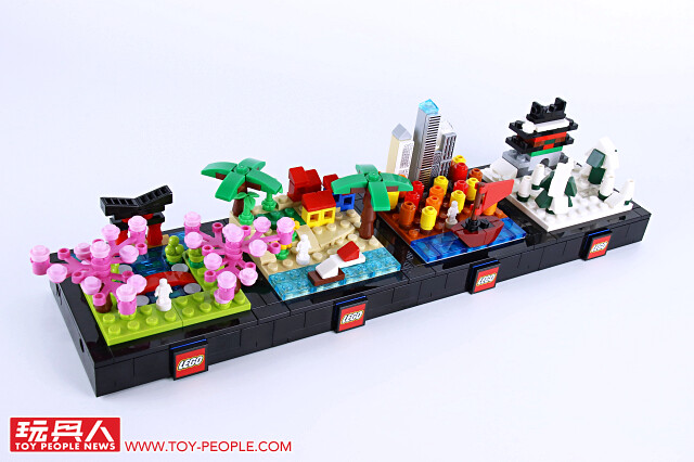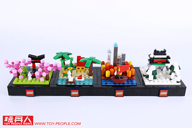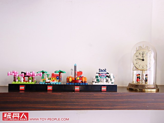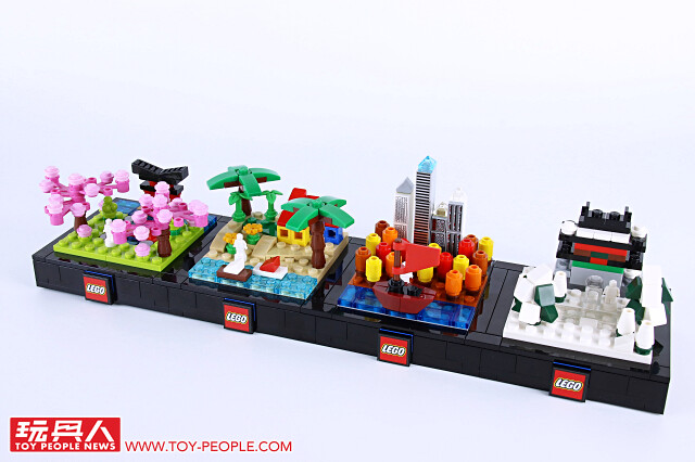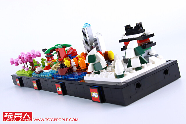▼ 把場景跟底座組在一起就完成啦!四季模型單一款就擁有不錯的完成度,可以獨立展示,也能藉著搭載於底版邊框的插孔與插銷來兩兩組合!組合後就可以用每款都有附上的兩片 1×2 平面黑磚來取代原本兩個 1×1 零件相鄰、卻沒有接合的情況,更具整體性!