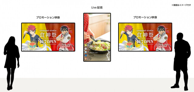 『cookpad studio 食神祭』的活動地點位於日本大阪心齋橋,由 CookpadTV 公司所營運的料理 Live 體驗型攝影棚「cookpad studio」,店內設置了三台 65 吋大型展示螢幕,能夠讓消費者一面觀看作品影像、演出者的料理 Live 直播,一面享受合作主題餐點、購買限定合作週邊。