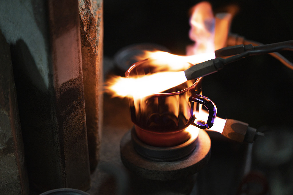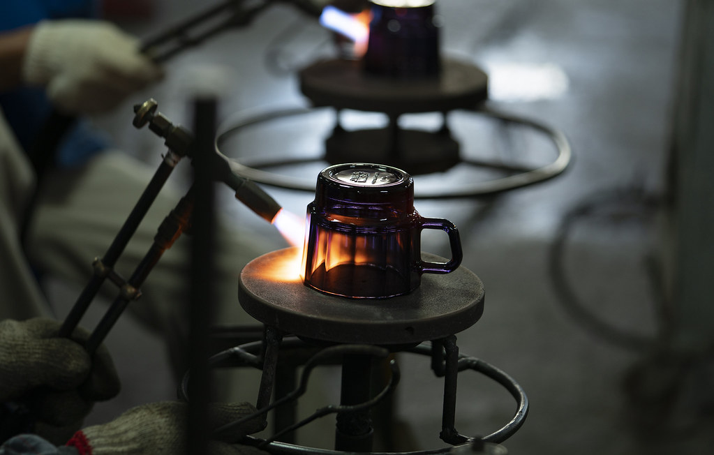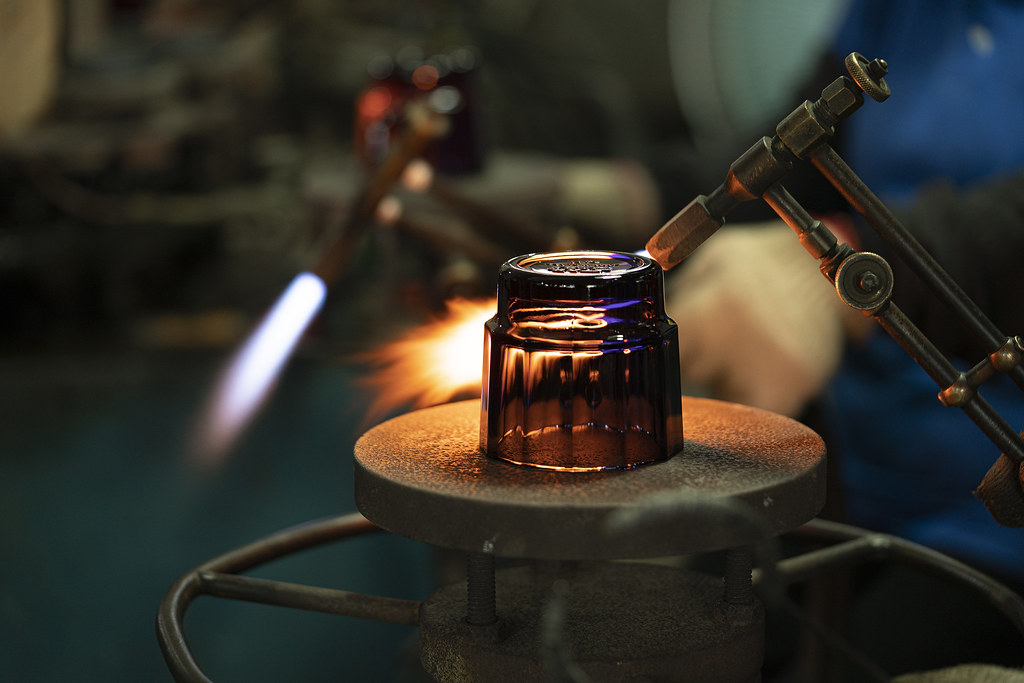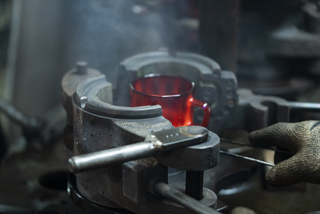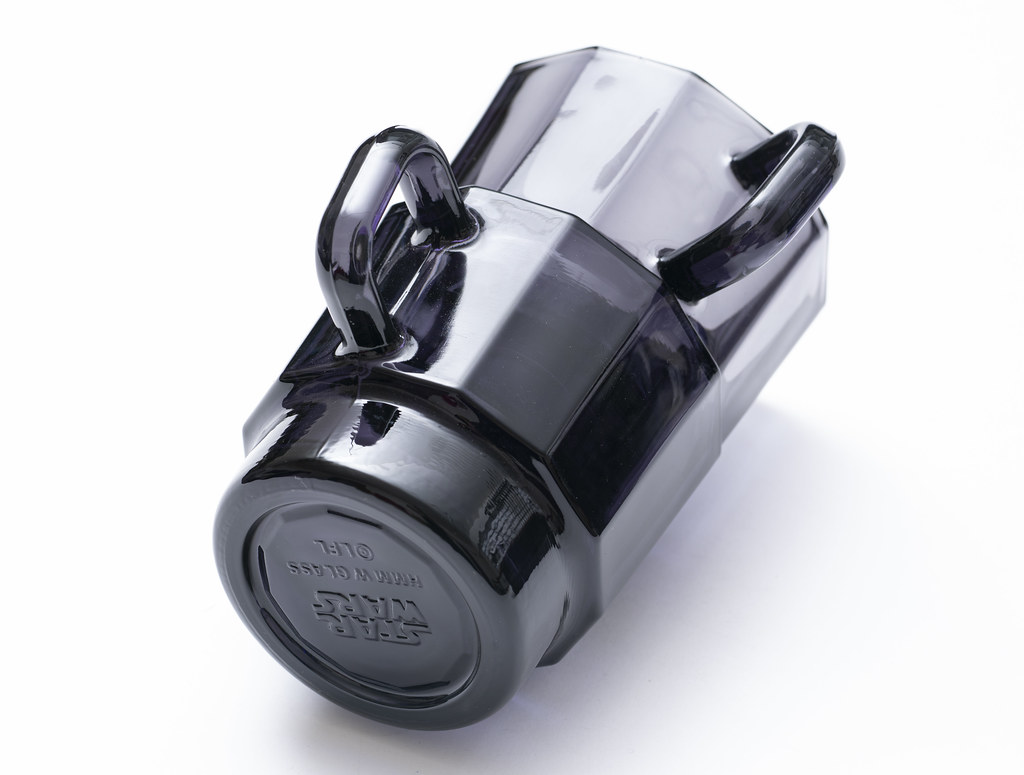 星際大戰黑武士特別版玻璃杯,是由本土資深職人用窯爐將玻璃加熱到攝氏 1400 度,讓玻璃呈現液態膏狀後,採壓鑄的方式手工生產。在炙熱的高溫之下,將廢棄的玻璃原料逐步型塑成精美的日常用品。呼應了生生不息的設計概念,將時鐘的刻度轉化成杯身的十二面優雅稜角,並運用玻璃染色工藝,賦予熟成的黑色,在各種角度都能有不同的光澤變化,加上一體成形的防燙把手,實用度再升級。