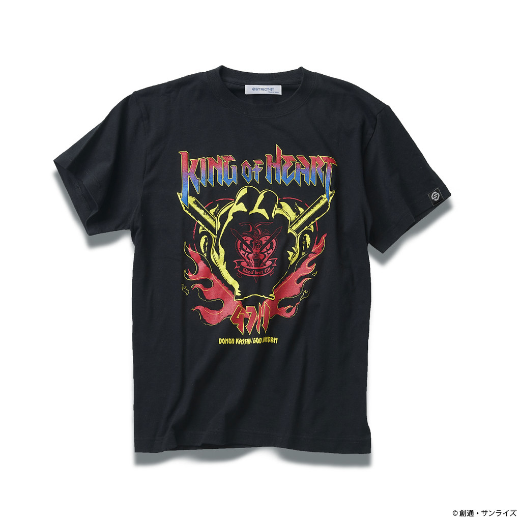 強到可以徒手跟鋼彈對打的東方不敗是G鋼彈裡的經典反派角色,除了能以布匹當武器摧毀MS的強大力量以外,其亦正亦邪的設定也是讓他受到廣大粉絲喜歡的原因。這次STRICT-G推出以太極標誌添加功夫風味的「東方不敗 T恤」紅/黑兩色,另外有洗牌同盟盟主「紅心王」的「KING OF HEART圖樣T恤」紺/黒兩色、以硬派搖滾風格設計來繪上機體的「洗牌同盟圖樣T恤」,全5款。