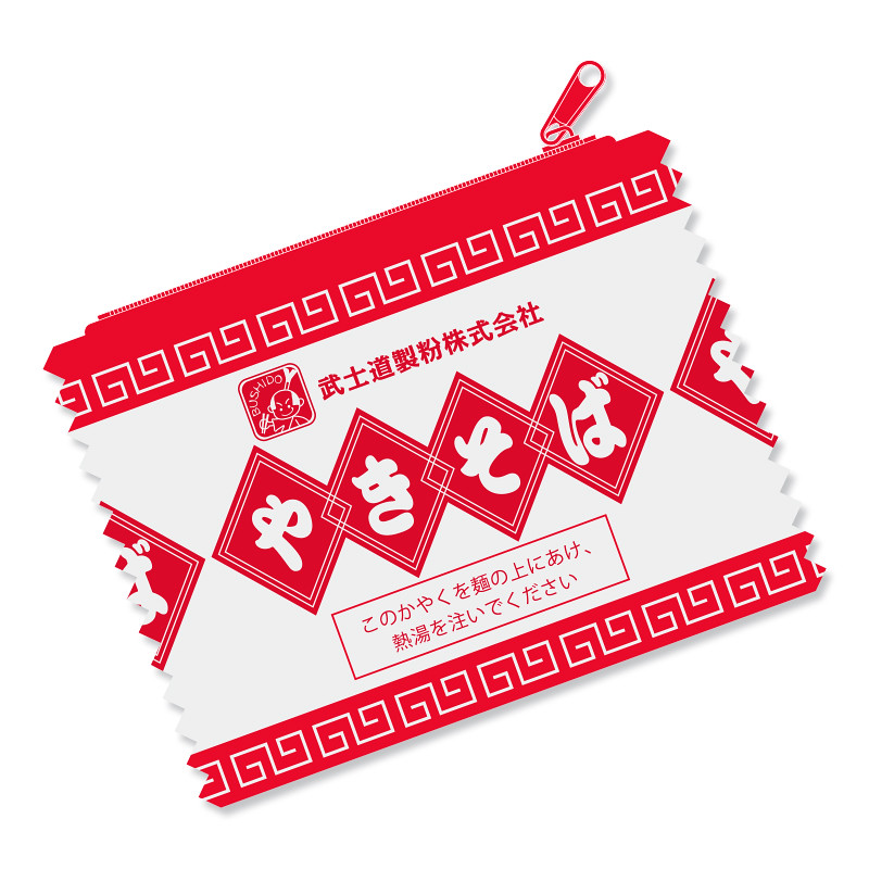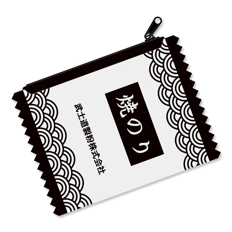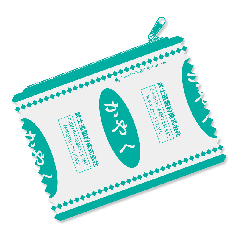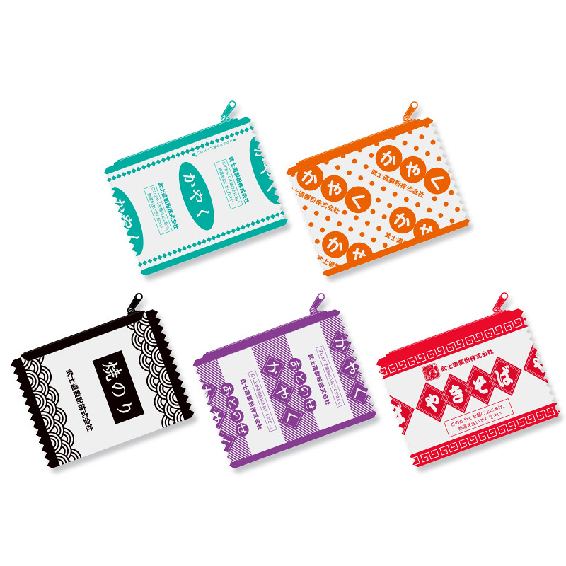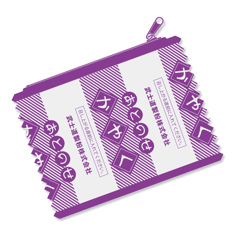 採用公司「武士道(Bushiroad)」的名字,虛擬了「武士道製粉株式会社」,並以其品牌泡麵中的調味料包做為設計,五款小巧可愛的調味包造型小包,尺寸約15公分,顏色和圖樣上都略有不同,卻都能一眼讓人辨識出是泡麵的調味料!透明的材質可以裝一些簡單的小東西或零錢。
