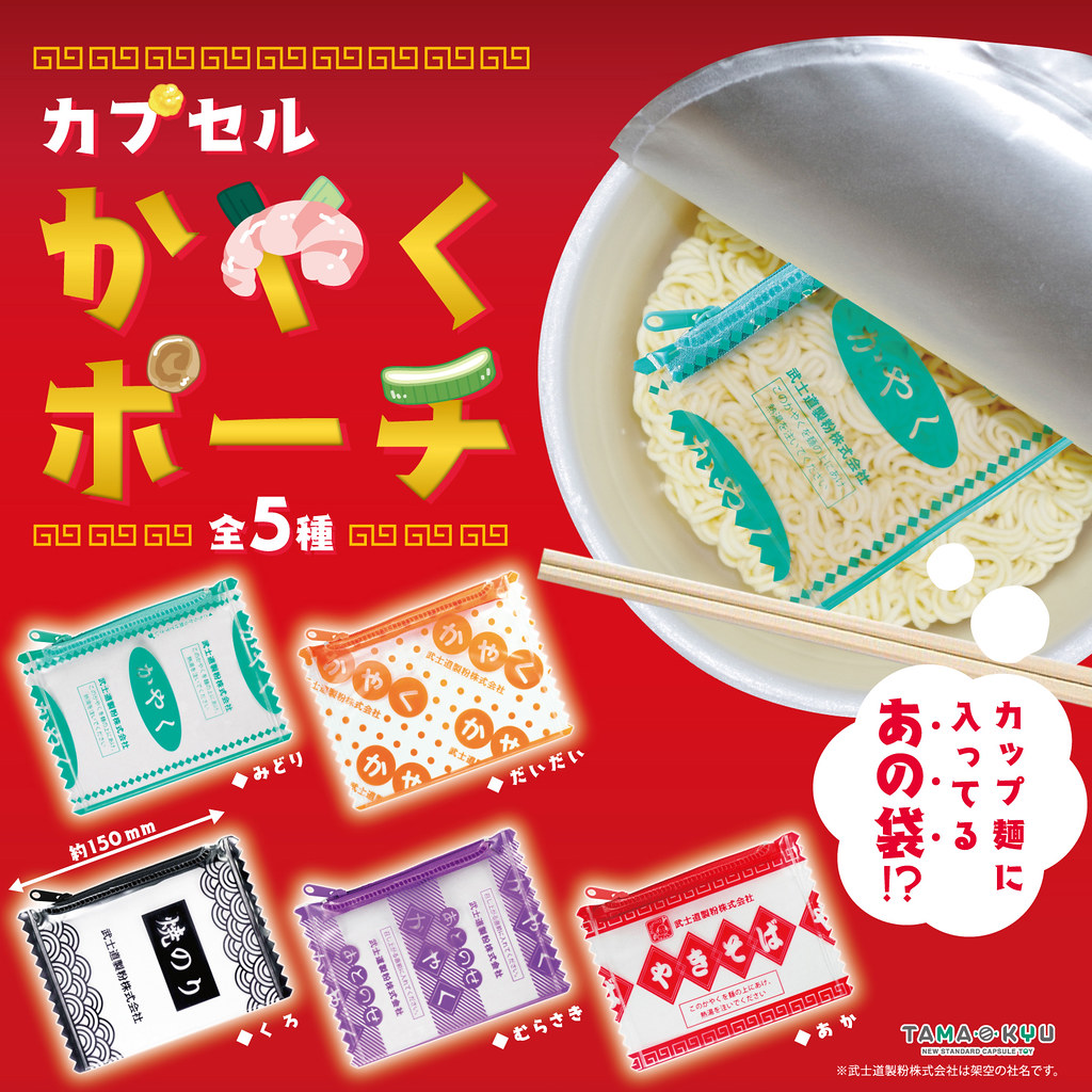 主要從事卡牌遊戲、遊戲軟體以及角色等周邊商品的日本Bushiroad(ブシロード)公司,旗下新興的轉蛋品牌 TAMA-KYU(たまきゅう)推出了一款有趣又可愛的轉蛋「調味包小包(かやくポーチ)」一共五款,一轉300日元,於2019年08月開始販售。