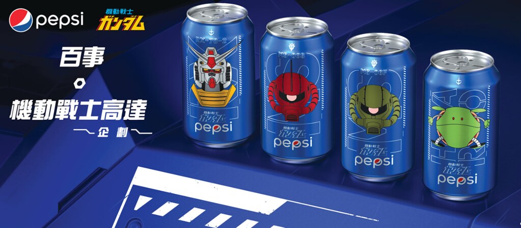 為紀念《機動戰士鋼彈》動畫開播40週年,香港百事可樂與《機動戰士鋼彈》聯名推出「鋼彈特別版紀念罐」,一套四款包括「鋼彈」、「薩克II」、「夏亞專用薩克II」及「哈囉」圖樣。除了紀念罐以外還有多樣限量版聯名商品,以及極限量的 PG 1:60 RX-78-2 鋼彈模型(彩色電鍍版)!極具收藏價值的一款聯名,喜歡鋼彈的玩具人不要錯過啦~