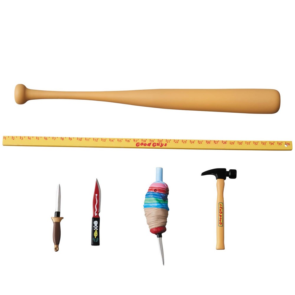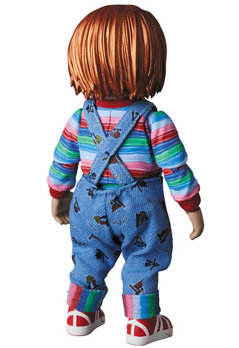「MAFEX 好孩子恰吉」高約 13 公分,最大的賣點就在於用布料縫製的吊帶褲和讓可玩性再升級的可動眼設計,吊帶褲的圖樣、繽紛的條紋上衣、招牌球鞋皆高度還原電影設定,頭雕共有三種,髮型、表情的呈現都有所不同,面龐細緻的陰影塗裝讓恰吉的恐怖感再提升,鞋底的立體浮雕、Good Guys 字樣也沒有放過,配件包含兩把刀、鐵鎚、黃色長尺,以及因為手斷掉、所以直接將刀子插在手腕上的替換右前臂。