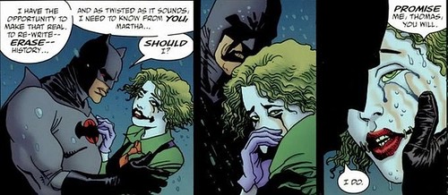 參考和獨有元素:雖然正史有發展過類似劇情,但這故事卻是描寫如果小丑真恢復正常,那麼他對蝙蝠俠會造成什麼影響的版本。同時值得注意的是,此宇宙的初代羅賓是傑森陶德,所以等於第一個兒子被小丑殺害,導致這位蝙蝠俠認為自己做的過度保護行為都是對的而更一意孤行,並且對小丑和傑克的仇視感也是歷屆版本中最高的。