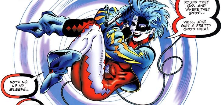 活躍在Earth-Two(不是用數字喔)的世界,設定上相當喜歡用雙關語和惡作劇來達到犯罪甚至是殺人的目標。