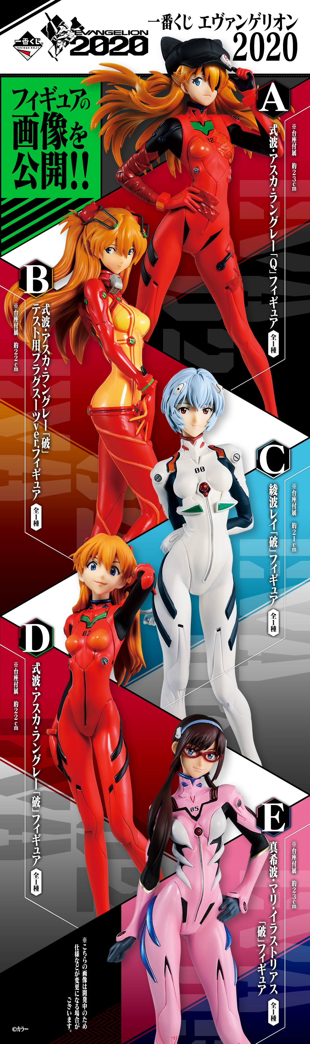 「一番賞 福音戰士2020」光是 A~E 獎角色模型就推出了 5 款劇中人氣女角明日香、綾波零、真希波在《破》、《Q》中的各種造型,每款約 21~23 公分高,雕塑出插入栓服的精緻細節與色彩,尤其明日香就有三個不同時期的造型,怎能不拼一波啊!此外獎項中也包含了印有開田裕治老師繪製插畫的插畫板、資料夾、小碟子、玻璃杯等實用生活週邊!