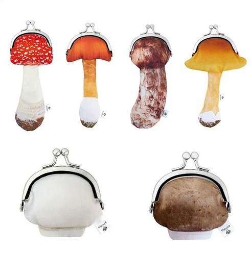 這款帶有濃濃惡趣味的小錢包,以各種仿真菇類作為造型,共有六款,分別是三款毒菇與三款可食用菇,包含:
