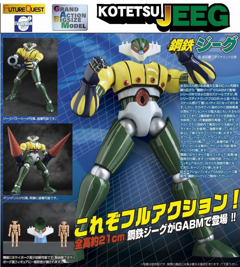 以「大尺寸」兼「可動性」做為主要賣點,由日本玩具公司 EVOLUTION TOY 所推出的「GABM」(GRAND ACTION BIGSIZE MODEL)系列玩具,又要推出一款同樣來自於永井豪老師的作品,就是《鋼鐵吉克》(鋼鉄ジーグ)!預計將會在 2020 年 1 月上市。