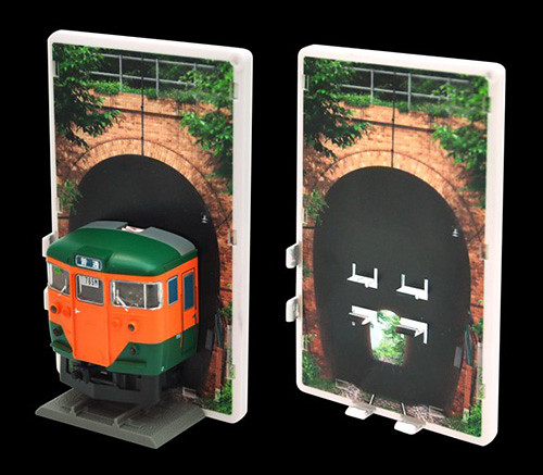 另外,除了車體頭部的本體之外,TOMYTEC 有特別推出可以用來搭配的卡片存放盒套,它的外觀圖案剛好是隧道的出口,將車體標本崁入上去之後,從正面看就彷彿是一輛剛出隧道的電車頭,而且這個特殊的盒套背面還可以用來放車票 IC 卡片,日本當地常用的車票如 SUICA 西瓜卡或是 PASMO 卡片大小,和台灣的悠遊卡等卡片都是相同尺寸的,因此應該都是可以通用的。