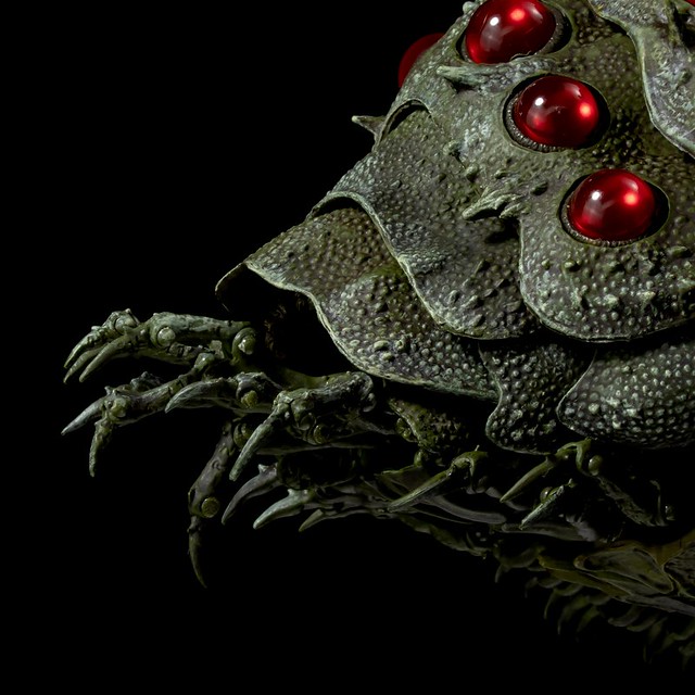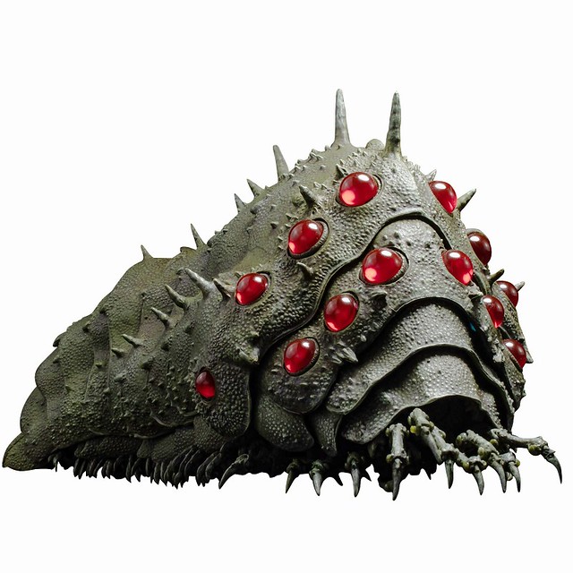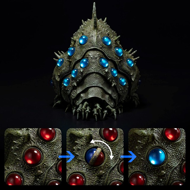 而可動部份更是令人驚豔,每節身軀都設置可動關節,可自由扭動、伸縮。14 個眼睛使用透明零件製作,可從平穩的藍眼翻轉成憤怒的紅眼。全身近百個腳都設有可動關節,極為壯觀!