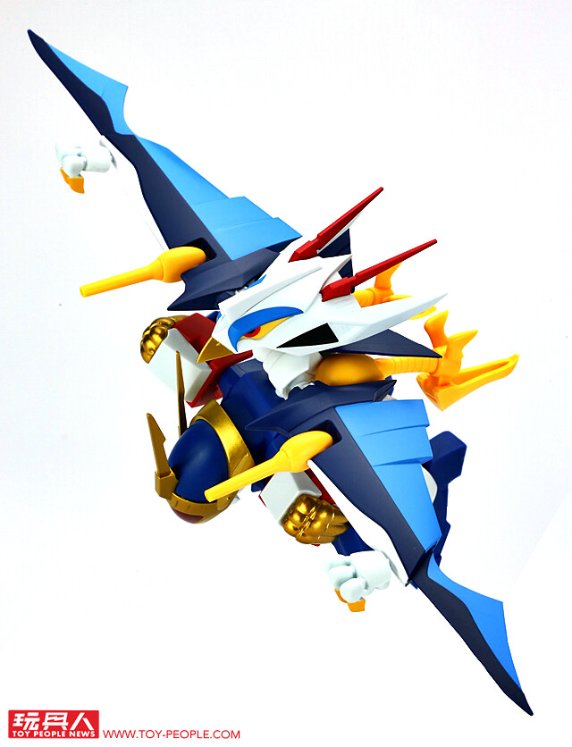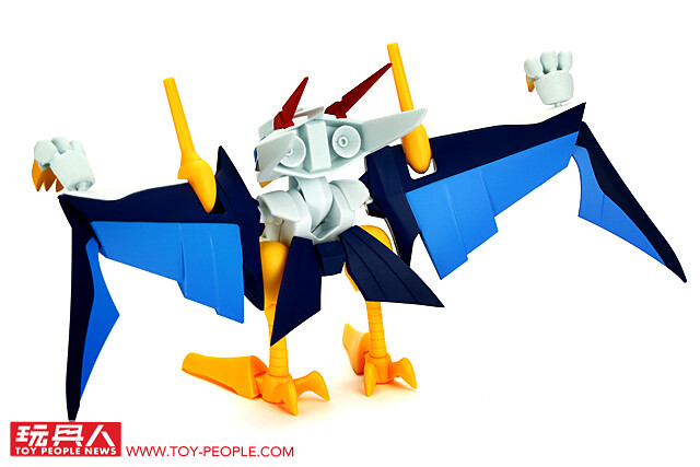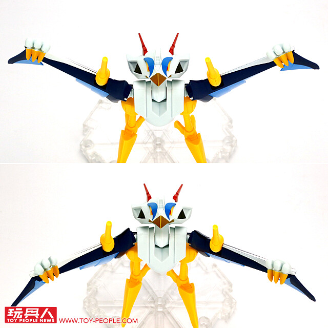 最後就是那有點獵奇的 NXEDGE STYLE 原創機構!根據 TAMASHII NATIONS 釋出的原創設定,空神丸的身體可以拆成三個部份:鳥頭和鳥身居然是盾牌,翅膀能當作飛翼零件,腳和屁股則能變成加農砲。也就是說,一隻空神丸能「分屍」成三個部份作為龍神丸、戰神丸、幻神丸的武裝。