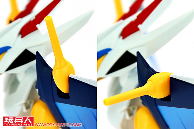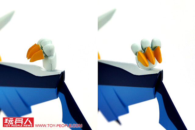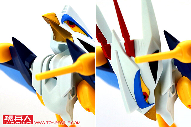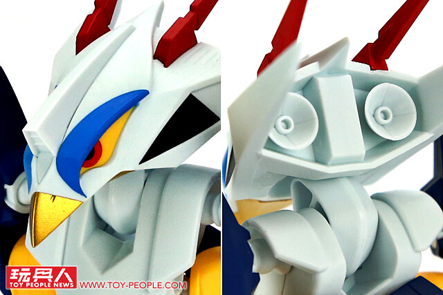 ▼ 本體的塗裝表現算是相當良好,用來施展『殺傷嘴』的鳥喙使用金色塗裝增加厚重感,而為頭部後方雖然因為全白不太明顯,但兩側噴射引擎的細節都有完整刻劃出來,為整體造型增添層次。