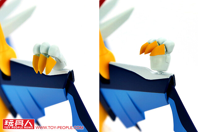 ▼ 翅膀上的鳥爪雖是固定造型,但透過基部的球型關節設計,能夠自由旋轉、調整角度,讓各種姿勢都能更加生動。