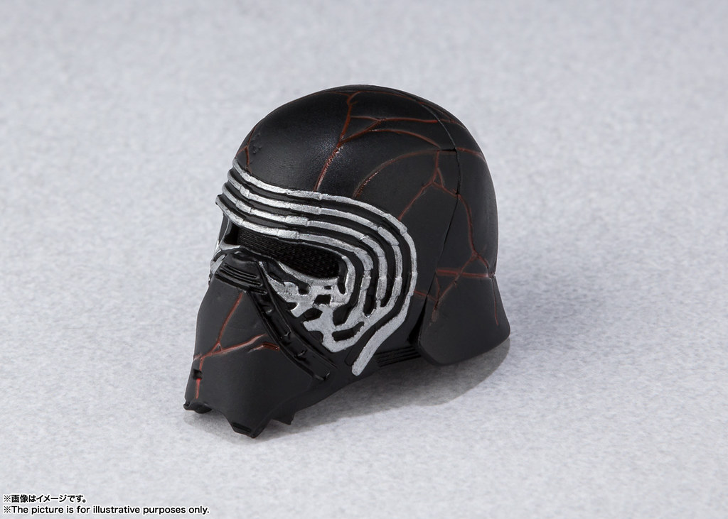 「S.H.Figuarts 凱羅·忍」依照電影設定將他修補好的頭盔細節完全再現,服裝的紋理、皺褶部分施以精美刻畫,長靴還採用帶有亮面效果的塗裝展現出異樣質地,值得一提的是本作收錄了可拆卸的布料披風,依據官圖看來,披風內應有內置鐵絲能夠擺出各種狀態,再加上特色的十字光劍、光劍柄,以及同樣採用數位塗裝(デジタル彩色)技術製作、展現演員「亞當·崔佛(Adam Driver)」面部輪廓的裸顏頭雕,即可展現豐富的中二帥氣姿態!
