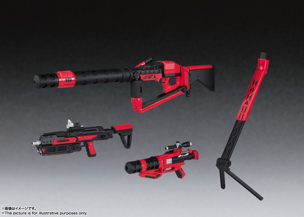 「S.H.Figuarts 西斯士兵」依據電影設定充分地展現了此新兵種搶眼的造型美與豐富的刻線細節,武器部分的配色調性與本體相同,皆採用對比強烈的紅、黑色並以銀色點綴,包含兩把造型不同的爆能槍,一把尺寸再升級的大型爆能槍(Mega Blaster / メガブラスター),以及採用替換件方式拆裝、輔助跪姿射擊所用的支撐腳架,真的讓人心動!希望西斯士兵在電影裡能夠有亮眼的表現啊~!