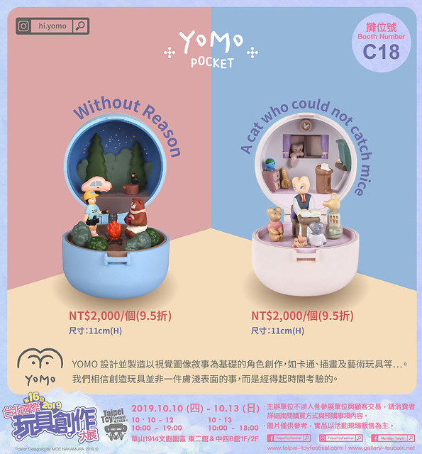 韓國設計團隊YOMO(요모),以掌上玩具盒的概念,設計可愛又溫馨的故事情境盒「Yomo Pocket (요모포켓)」,多款場景與不同角色微縮在掌上把玩,將在台北國際玩具創作大展TTF2019 現場YOMO展位(C18)療癒登場!