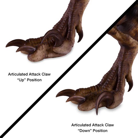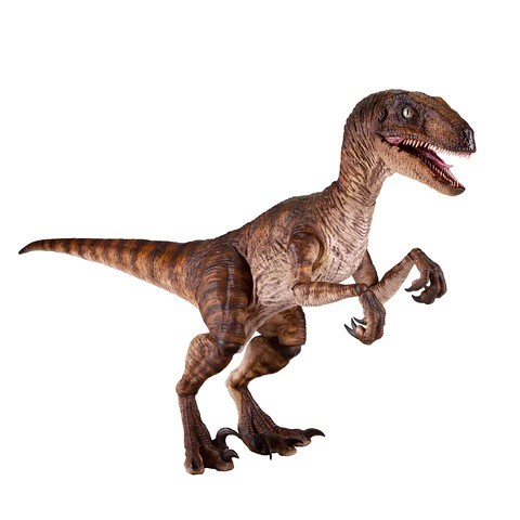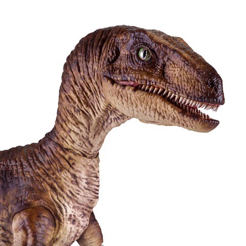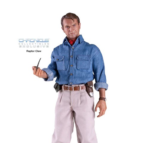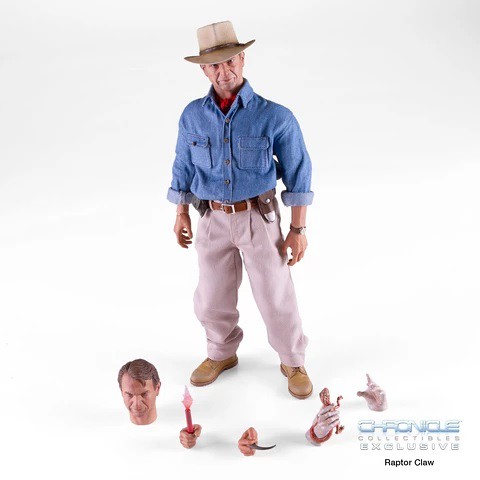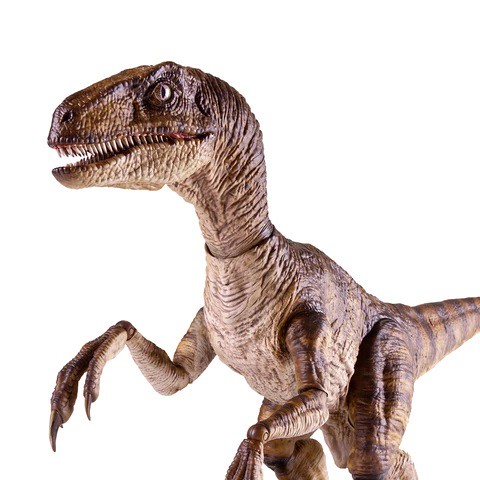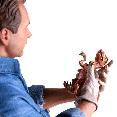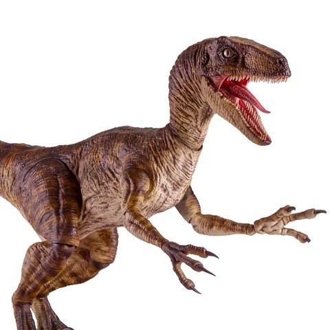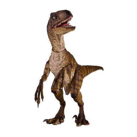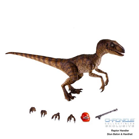 另外,同時間 Chronicle Collectibles 也推出了 1/6 的迅猛龍立體化商品,將迅猛龍在劇中的逼真模樣,以近乎 100% 的高還原度重現,可動部分包含頭部、兩隻手與腳,並且也有爪子的替換零件,以及工作人員用安全帽和武器配件。另外還推出亞倫‧葛蘭特和迅猛龍一起的同捆版本。