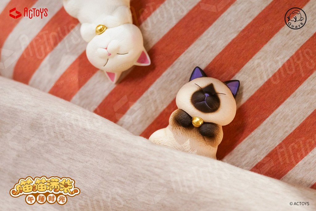以日本原型開發能力結合中國生產技術的「繪夢玩具公司(EMONTOYS /絵夢トイズ)」與中國品牌ACTOYS,將推出貓鈴鐺系列新作「喵喵滿袋:午睡時光」盒玩,以仰天躺睡姿態的九款貓咪為設計,尺寸約130mm,參考售價為1000日圓,預計2019年12月下旬發售。