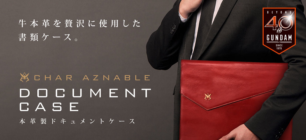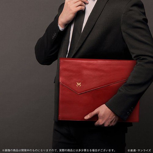 為紀念「機動戦士ガンダム」的動畫40週年,為了榨乾鋼彈迷的錢包,萬代 BANDAI 推出以牛皮製成的「《機動戰士 鋼彈》夏亞專用 皮革公文包(機動戦士ガンダム シャア専用本革製ドキュメントケース)」,售價為22,000日元,2019年10月08日起在PREMIUM BANDAI 線上商店號開始預購,預計2020年01月發售。