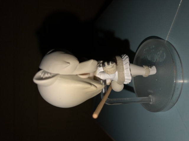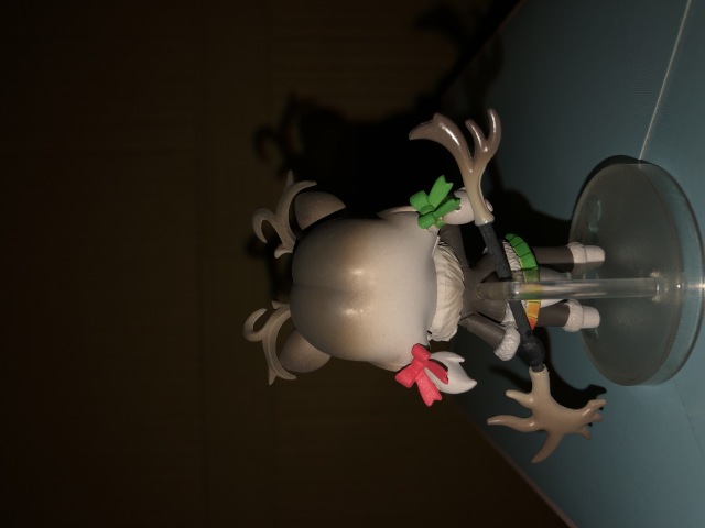 再來是極地馴鹿,每一代都有兩隻型差不多,但配色跟動作不一樣的朋友,第一彈是藪貓(我收不到)、第二彈是豹,這隻除了配色不一樣的地方在眼睛,仔細看這隻的眼睛可以發現他是模仿鹿的眼睛,非常有趣。可惜的地方在於,我的這隻後腦有以點小髒污、手套有一點溢色,不過還可以接受,畢竟這麼小隻又要上那麼多顏色。