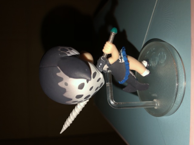 最後是我這彈最喜歡的一隻 也就是我們的 一角鯨 頭髮跟衣服都帶出了一角鯨的斑點斑紋,也配上了海的藍色,頭髮也做出角的造型,還綁上了可愛的蝴蝶結,獸耳的部分也改成了魚鰭,尾巴的部分則是有長長的尾鰭。武器的部分則是角的造型。嘴巴張成O型超可愛。