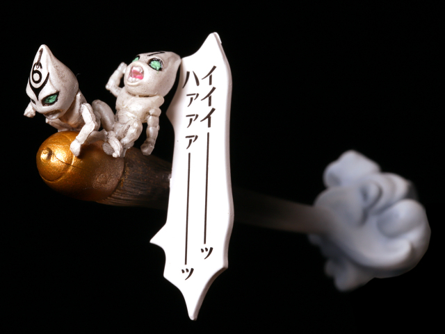 加丘:「能把我逼到這個地步,我向你…表示敬意。但在最後一刻利用了噴出來的血液的人是我。我把後頸噴出的血液像柱子一樣凍住了。鐵柱的碎片已經不能繼續往內插了,被凍得結結實實的!它已經不能再刺傷我了!」
