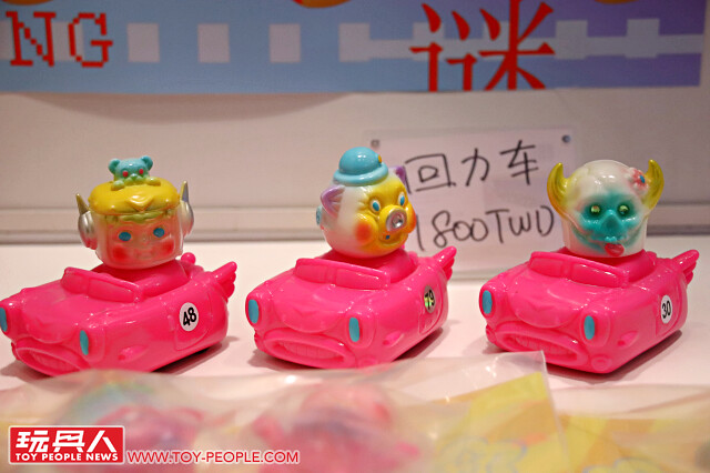 來自北京的TOYSBIAN,各種顏色鮮豔、做工簡單的sofubi小玩具與迴力車、碰碰車,還有如「銀河計程車」、「宇宙暴龍」等的組合包可以一次收藏整個場景,意外讓人感到療癒呢!