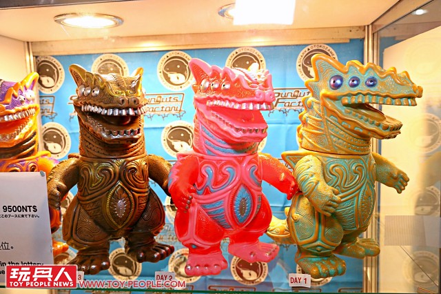 由 Dino Gangster 恐龍黑幫推出、在 TTF 首賣的三角龍「腹黑 羅伯」、霸王龍「拳王 麥可」(透明素體)以及其他恐龍黑幫的系列角色都超帥超霸氣啊!而 STUDIO SUNDOWNER 除了有 TTF 限定的新色「干支Q 寅將」,還有包含「滅世遊魂」在內的新作展示。