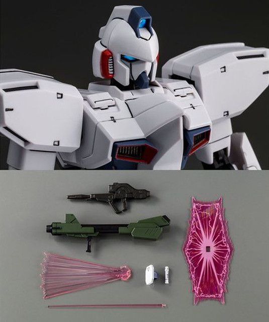 這款鋼伊吉原型,頭部的地方由於呼應原本初始無任何武裝的設定,所以是新開的零件(頭部沒有巴爾幹砲),武裝部分則配有標準的光束步槍、光束軍刀、火箭砲、以及光束護盾。另外還附有對應新設計畫稿的水貼貼紙,讓原本就比較陽春感的鋼伊吉原型機,也可以有很多細部的圖案呈現。